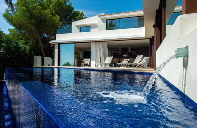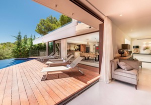 This impressive villa built over 3 levels, boasts 6 Bedrooms & 8 Bathrooms, Home Cinema, Gym, Swimming Pool, Outdoor kitchen & Alfresco dining is the perfect home and offers everything one would need for a fabulous family holiday home or permanent home in Ibiza