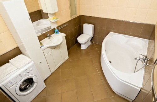 просторная, светлая квартира. Хорошая транспортная развязка. Ванна, двое раскладных кресел, двуспальная кровать, телевизор с плоским экраном.Чайник, микроволновка, холодильник, большая уютная гостиная ,печь.Вблизи супермаркет, кафе.(лучше бронировать наперед)