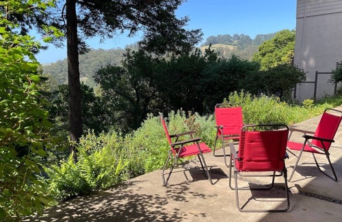 A relaxing retreat with beautiful views of redwoods overlooking Tilden Park with occasional wildlife. Usually, tranquil foggy mornings and warm afternoons. The many windows of the house make you feel closer to the outdoors while you feel cozy and safe within. Great place for spontaneous dance parties, movie marathons on the projector, stargazing in the hot tub, and reading on the patio. Within short walking distance, we have a secluded neighborhood park, Lake Anza open to swim, native plant botanical gardens, a golf course, and great hiking trails. Full amenity kitchen and grill outside for whatever meals you like. Medium-sized Dog/cat door that closes.