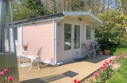 Shower Room: Walk-In Shower, Toilet. Calor Gas central heating, electricity, bed linen, towels and Wi-Fi included. Welcome pack. Front garden with patio, garden furniture, barbecue and patio heater. Private parking for 1 car. No smoking.. The Chalet offers a secluded spot perfect for relaxing for both humans and dogs alike, this enchanting property is tucked away at the end of the owners’ garden at a lower level with trees and a sheltered side pathway dividing the areas for privacy. Overlooking a large lawn which will be yours to enjoy. The Chalet also benefits from a south facing patio area with seating, a patio heater and a BBQ for all occasions.