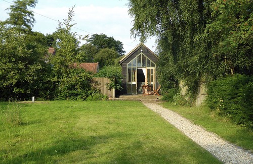 Bedroom: (6 Steps), Zip And Link Kingsize Bed (2 x Singles On Request). Electric central heating, electricity, bed linen, towels and Wi-Fi included. Welcome pack. Lawned garden with patio and garden furniture. Bike store. Private parking for 2 cars. No smoking.. The Studio is situated in Hoe, an unspoilt Norfolk village. It is detached and secluded, near the owners’ home, and was originally an artist’s studio. The living room is flooded with light from the floor-to-ceiling window at the front and has an unspoilt rural view. Electricity for The Studio is all from renewable sources and the installed solar PV array helps to make your stay a green break.