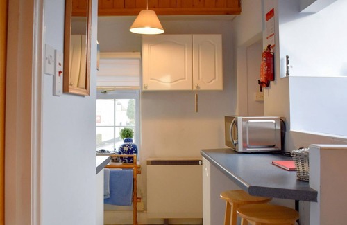 Shower Room: Cubicle Shower, Toilet. Electric central heating, electricity, bed linen, towels and Wi-Fi included. Welcome pack. Utility room with freezer (shared with owner). Enclosed private garden with sitting-out area and garden furniture (shared with owner). Private parking for 1 car. No smoking. Please note: There are 5 steps to entrance. No children.. This is a fantastic first floor apartment located just outside Huntly. There is a cosy living space and the bedroom area has some lovely views of the fields to the rear and the cricket pitch where games are played in the summer. The kitchen is compact and well-equipped with a breakfast bar/dining area. Outside, the owners have granted access to their own personal garden space which is private and not overlooked. Parking is at the back of the property which is accessed through a door on the ground floor.