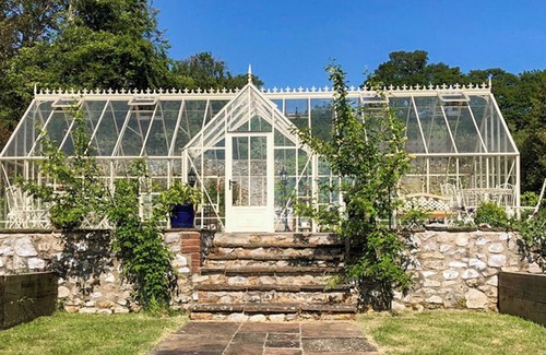 This well-presented open-plan space blends rustic charm with modern comfort. Original features add character, while the electric wood burner brings a warm, homely touch to the living area. The kitchen is stylishly equipped for all your culinary needs, and the king size bed promises restful nights after days spent exploring. A shower in the en-suite bathroom adds a touch of elegance and, outside, garden furniture invites you to linger over evening meals beneath open skies. The cottage is part of the Goodmans House grounds, a hidden gem set within 8 acres of unspoiled rural landscape. As you wander the estate, you’ll discover open meadows, wooded corners, and far-reaching views stretching across two counties. Two large ponds reflect the changing skies and draw local wildlife, while the Duck Pond offers a charming setting for a relaxed afternoon — complete with a fire pit, bench seating, and a picnic table perfect for spontaneous outdoor eating. The Walled Garden is perhaps the heart of the estate, home to the elegant Orangery.
