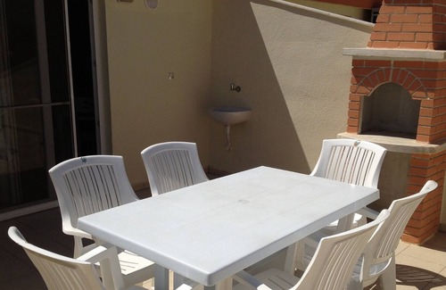 Sleeps 4 - 1 bedroom 1st floor apartment. Fully fitted kitchen/diner consisting of oven, hob, microwave, fridge-freezer, water cooler and washing machine. The lounge has a bed settee with satellite TV, DVD, CD, MP3 & DivX and FREE air-conditioning, which leads onto a balcony with outside furniture. The bedroom has king size bed with a mirrored wardrobe and drawers and FREE air-conditioning. House bathroom with mosquito screens throughout.