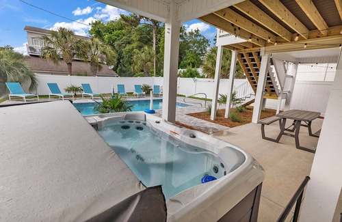 1 blk to Beach|Htd Pool|HotTub|Mini Golf|Gm Room is located in Atlantic Beach. 1 blk to Beach|Htd Pool|HotTub|Mini Golf|Gm Room provides accommodation, featuring Private Pool, Wellness Facilities, Child Friendly, among other amenities. This House features Private Pool, Wellness Facilities, Child Friendly, to make your stay a comfortable one.