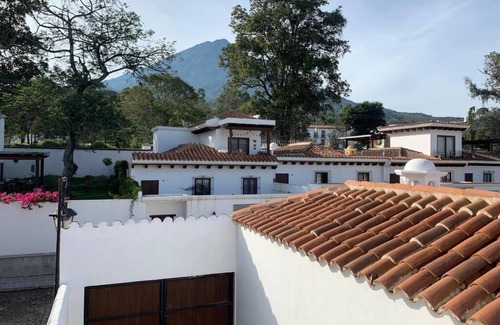Mi casa es tu casa! Charming colonial house overseeing the volcanoes just a 10-min drive from Antigua, Guatemala. Gated community with access to the club house, BBQ area, and swimming pool. 3 bedrooms (2 Masters, 1 guestroom with a bunk bed ). One master bedroom on the second floor with one queen bed, sofa-beds, and a full bathroom a balcony overseeing the volcano and coffee plantations. Second master bedroom on the first floor, with one queen bed, full bathroom handicap accessible. Third bedroom with a bunk bed, one full size bed and one twin size bed. One full bathroom,which is also the guest bathroom. Enjoy complimentary breakfast with a fresh Guatemalan coffee prepared in-house daily by the "Welcome Manager", choices from full, healthy, or continental. Fully equipped kitchen. Living room with leather furniture. Full kitchen, hand carved wooden dining table for 6 people. Leather furniture in the living room. We have a 58 inches smart tv. Wi Fi available. Enclosed parking for one car. Full access to the club house, with swimming pool, barbecue area, and green area.