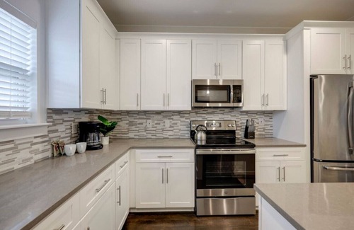 This BRAND NEW GORGEOUS TOWNHOME is three levels with ample bedding for large groups and families. It features an amazing open space layout on the bottom floor for supreme leisure with friends or family. The kitchen has all new appliances and is stocked with basic cooking supplies, dishes, a coffee maker, and more. The living room is ultra-comfy and cozy with a big floating TV. This home is centrally located in a very safe, fun neighborhood!