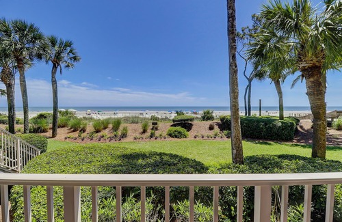 This luxury 3 bedroom, 3 bathroom Sea Pines villa sits directly on the beach with amazing ocean vistas at every turn! You can walk out from your ground level villa directly to the ocean! Located in the "Gold Coast" area of Sea Pines at the exclusive gated Turtle Lane complex which offers 2 onsite pools and the most beautiful stretch of beach on the Island.