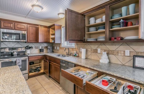 6. Check-out time is 10 AM. Check-out information is located in the Guest Book and will be emailed. Unauthorized late checkout will be charged the full security deposit plus additional charges if it results in the cancellation of incoming guests. Please leave the house the way you found it. No need to make the beds on check-out day. Leave all the beds unmade (sheets/comforters/pillows). Please place all towels in the laundry basket on top of the dryer in the garage. Start the dishwasher with any last-minute dishes, etc. We will put them away.