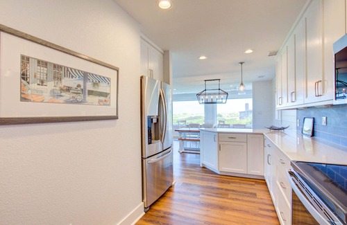 On the Middle Level, get some sleep on this quiet floor which holds all 4 bedrooms. Get the kiddos situated in the Bedroom with 2 Twin Bunk Beds and find plenty of extra sleeping space in the additional nearby Bedroom with 2 Double Beds. Down the hall, enjoy access to the Mid-Level Deck from both the King Master Bedroom and the Queen Master Bedroom, each with its own attached Full Bathroom. Then, take a book and your favorite beverage out onto the cozy, Mid-Level Deck where you can relax while you read a book or simply relish a nap in the peace and quiet of the beach life. A Full Hallway Bathroom and the Laundry area complete this level.