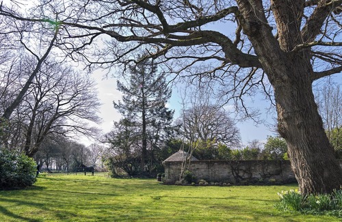 The house is accessed via impressive wooden electric gates onto a sweeping gravel driveway, which offers plenty of secure off-road parking (for at least six cars) and there’s a convenient electric car charger. Guests are greeted by an elegant mill-wheel fountain in a formal front garden.