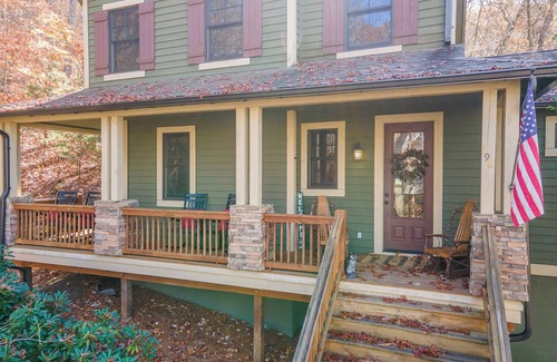 On the main floor, you'll find the spacious great room that features a magnificent floor to ceiling stone fireplace, beautiful hardwood floors, plenty of comfortable seating, and flat-screen television. Open to the great room is the kitchen and dining room. The kitchen features light granite countertops, full-size appliances, and all the cookware and dishware to enjoy a home-cooked meal in the adjacent dining room. Also on this level is the Master Suite complete with a king-size bed and ensuite bathroom. Upstairs is a guest room with a queen-size bed and a third bedroom with a twin over full bunkbed and a trundle . No home in the South is complete without a porch, and this home is screened-in and perfect for enjoying the cool mountain breeze. This home is not pet friendly.
