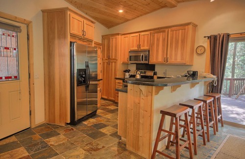 The Tree House is a charming and secluded 1 Bedroom, 1 Bathroom home that sleeps 4 guests, (perfect for a couple's retreat). The kitchen is fully equipped with stainless steel appliances, granite countertops, and a dishwasher. The home has a washer and dryer, a flat-screen satellite TV, WiFi, and an in-room A/C. There is a gas BBQ, picnic table & chairs, and a wooden porch swing on the back deck. The large and very private deck is located at the base of Chilnualna Falls and overlooks the South Fork of the Merced River. This home is pet-friendly, EV charging station available within five miles of the cabin.