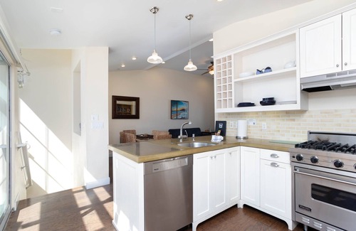 Unforgettable Avila Beach boutique style townhouse with private ocean view rooftop deck and two private en suite master bedrooms, one with a gas fireplace. The open floor plan offers a large dining area, nicely furnished living room and an upscale kitchen that opens to an expansive dining balcony with a second grill. Amenities abound with three flat screen TV's, living room with a second gas fireplace.