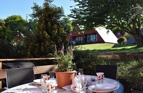 Separate Toilet.. Electric central heating, electricity, bed linen, towels and Wi-Fi included. Travel cot and highchair. Small decked terrace with garden furniture. Grounds, children’s play area, indoor heated swimming pool and tennis court (shared with other properties on-site). Public car park. No smoking.. Poppy Lodge really keeps family holidays in mind with a cool Scandinavian chalet design, ideally located on a holiday park of similar properties offering lots of fun for all. The Scandinavian theme is present throughout Poppy Lodge with wooden walls on show in the living room and sloping ceilings in the two comfortable bedrooms, keeping in line with the traditional triangle point design. There is a well-equipped kitchen and a separate dining room with patio doors leading to the terrace where you can dine al fresco in the summer evenings.