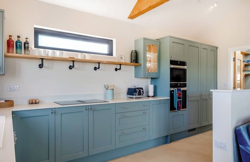Bathroom: Bath, Cubicle Shower, Toilet. Air source heat pump and underfloor heating, electricity, bed linen, towels and Wi-Fi included. Travel cot and highchair. Welcome pack. Back garden with sitting-out area, garden furniture and barbecue. Hot tub for 4 (private). Private parking for 2 cars. No smoking.. The Old Cowshed is a two-bedroom lodge nestled within a charming smallholding, offering an idyllic countryside retreat. Here, you can experience the simplicity of rural life by patting friendly ponies, watching sheep graze, and observing chickens as they peck and feed. Surrounded by expansive countryside views, this peaceful setting provides the perfect backdrop for a relaxing escape from the hustle and bustle of daily life.