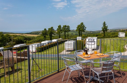 Enjoy the lovely views over the campsite towards Widemouth Bay and Lundy Island in the distance from the decking area or apartment itself.