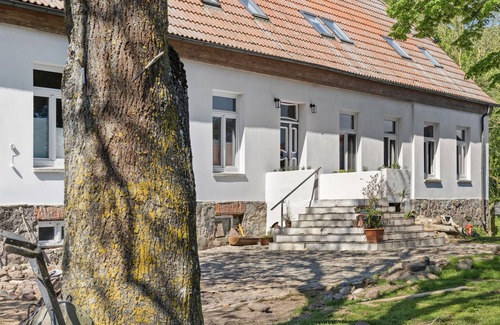 This pleasant vacation apartment in a manor house is located in the southwest of Rügen, not far from the Kubitzer Bodden. The friendly apartment welcomes you and your little family and offers you everything you need for a carefree vacation. Feel completely at ease here and enjoy the atmosphere created by the bright colors and the visible half-timbering. It is the ideal base for exploring the island, fortifying yourself with breakfast in the morning and relaxing in the evening on your return.