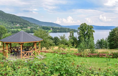The outdoor area of this homestead is equally impressive. The spacious garden offers plenty of room to play and relax, while the gazebo is an ideal backdrop for a picnic or a reading break. Your children will love the trampoline. Lake Krøderen invites you to take a stroll and relax. Take the opportunity to swim or fish in the lake. Or take a leisurely trip on the lake in a rowing boat.