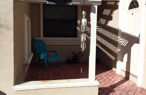 Beautiful quaint waterfront 2 bedroom unit! We're located on a canal that leads out to the intracoastal waterway and is a 15 minute walk to the oceanfront that has restaurants, shopping, and swimming at the beach! The property has 2 bedrooms (one king size and the other full size beds and linens are provided). There are 2 bathrooms with showers (towels provided), kitchen (with pots, pans, plates, cups, saucers, silverware, Keurig coffee machine, blender), family room with cable TV and internet, and a dining area. There’s a sitting area outside your door and a larger sitting area with a grill just a few steps on the side of the building. The unit is facing the canal where you can bring your jet-ski or small boat and park it at the dock. You can go biking or walking in this beautiful area! Come live the Florida life!
