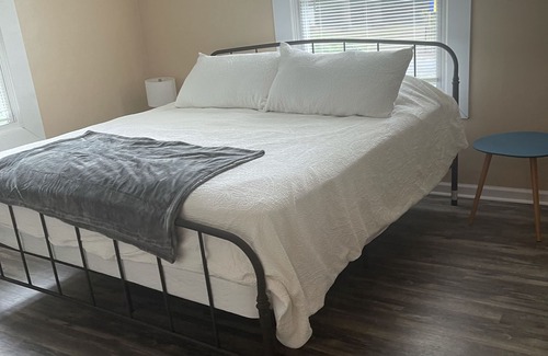 This cozy 2 bedroom home is perfect for both long-term and weekend travelers. There is a fully-stocked kitchen with everything you would need to make a dine-in meal. The living room boasts seating, an eating area, and a tv with stream service. One bedroom includes space to work from home with a desk, king bed, dresser, and closet. The second bedroom includes a dresser, full bed, and closet.
