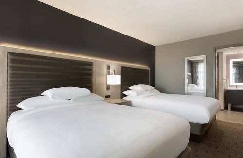 The sleek and stylish 2 Queen 2 Room Suite at the Embassy Suites By Hilton Charlotte Uptown offers 610 square feet of space to relax and enjoy the Queen City. Relax in the living room that features a plush sofabed, a desk that doubles as a dining table, and a wet bar stocked with a mini-fridge and a microwave. After a day of play, sleep soundly in the separate bedroom on two Queen-sized beds with premium sheets. The elegant bathroom boasts a lighted wall mirror, luxurious toiletries and a glass-enclosed shower for a refreshing start to the morning. This accommodation is ideal for families or group gatherings seeking a one-bedroom suite in Charlotte. The Embassy Suites By Hilton Charlotte Uptown offers an excellent launching point for business or leisure in the Queen City. The hotel, next door to the convention center, is within walking distance of Bank of America, Wells Fargo, and other corporations, as well as scores of dining and entertainment options. Sports fans can enjoy the NASCAR Hall of Fame across the street, and easily walk to see Charlotte’s pro teams in action. While at the hotel, grab a complimentary made-to-order breakfast before the big day, and then enjoy complimentary snacks and drinks during the Evening Reception in the sleek and stylish lounge. Other on-site amenities include an outdoor patio with a fire pit and skyline views, a saltwater indoor pool, and a Starbucks coffee shop.