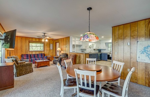 Dock details: Guest may use the private dock for day use; Vacasa must be notified in advance. Boats are prohibited overnight, and the boat lift in the slip are not available. If a boat is tied off during the day, it should only be tied to the right side of the cove due to the main channel getting very rocky.