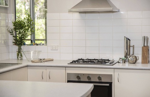 It has a fully equipped, modern kitchen including dishwasher, coffee machine, bread maker and much more; laundry facilities with dryer, iron and washing machine; lounge room with satellite television, blue tooth sound system, cosy combustion wood fire and reverse cycle air conditioning. It also has a spacious outdoor decking area on which to relax, cook a barbecue or dine.