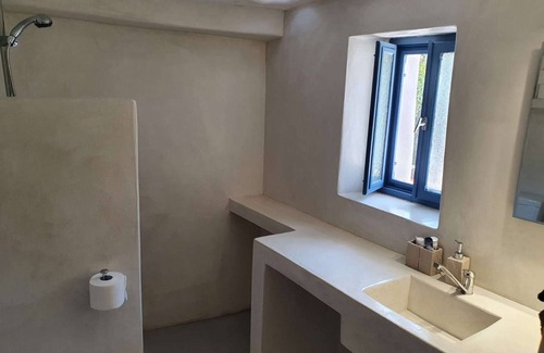 These two private tiny houses are situated on a unique spot in the middle of the Island at the Karavas Valley. You rent them both as one holiday home so it is perfect if you are with two couples. You can have holiday together but still your own private space. There are several terraces around the house as well. So enough space for everybody!