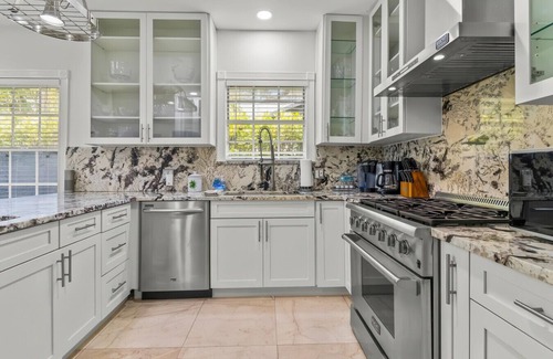 Welcome to your sunny escape in West Palm Beach! This peaceful 5-bedroom, 3-bath home is made up of two connected units (a spacious 3BR/2BA + a cozy 2BR/1BA), just 0.5 miles from vibrant Downtown WPB and only 8 minutes from the airport. Ideal for large families or groups, you’ll love relaxing by the heated pool, grilling in the tropical backyard, or lounging indoors in the stylish, fully furnished spaces. If you need more room, feel free to ask us about renting all 3 units on the property.