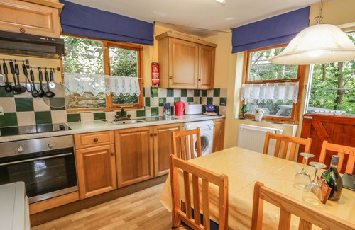 Amenities: Gas central heating with woodburner. Electric oven with ceramic hob, microwave, fridge/freezer, washer/dryer, TV with Freeview, DVD, WiFi, selection of books, games and DVDs. Fuel and power inc. in rent. Fuel for woodburner available to purchase locally. Bed linen and towels inc. in rent. Roadside parking on a first come, first serve basis. Patio and sundeck with furniture. One well-behaved dog welcome. Sorry, no smoking. Shops 12 mins walk, pub 2 min walk. Note: There are approx. 15 steep uneven steps to the elevated sun deck and so they may not be suitable for the infirm or young, unsupervised children. Note: River close to cottage and so dogs and children should be supervised at all times. Note: Owner would like short breaks to be 3 nights minimum.