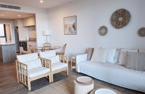 This apartment features two spacious and stylish bedrooms, each designed with your comfort in mind. The master bedroom offers direct access to a luxurious ensuite, while both rooms are fitted with high-quality bedding, ample storage, and ceiling fans for a restful night's sleep. It's your personal retreat after a sun-filled day exploring the coast.