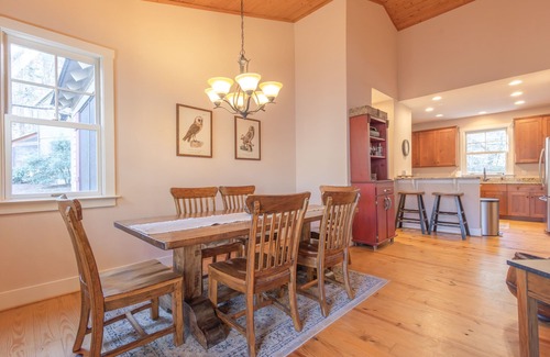 The kitchen is open to the great room, which features a stone fireplace. The home also boasts fantastic outdoor spaces, including a screened-in back porch with an outdoor fireplace, and plenty of outdoor seating so the whole family can sit and enjoy the sound of the creek. The itinerary for a Bear Lake Reserve vacation is endless and no matter what time of year a getaway is in order, the temperature, surroundings, and people are bound to make it an unforgettable adventurous experience. This home is pet friendly.