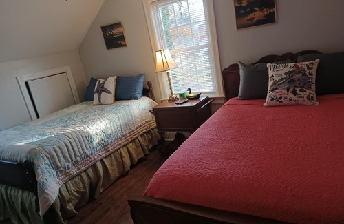 4-bedroom Chesapeake Bay retreat w/ fast internet, fenced backyard &fireplace. Large office & living room, plus a study area in the twin bedroom. Walkable neighborhood with Buckroe Beach 4 blocks away