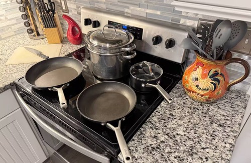- Plates, cups, bowls, pots, and pans are provided during your stay. Please note that chopsticks and cooking basics like oil, salt, and pepper aren’t included in thereservation.