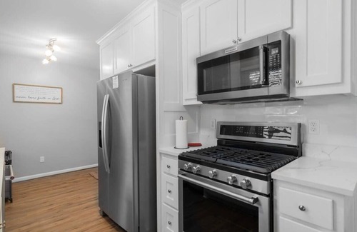 Enjoy a rich and relaxing experience at this centrally located home in a quiet neighborhood in Richardson. Newly renovated 3-bed, 2 bath designed to perfection and furnished with comfort, efficiency, and beauty in mind. It comes with everything you’ll need including a private driveway, private backyard, complete kitchen, comfy beds, washer, dryer, fast internet, televisions, coffee machine, hair dryer, baggage holders, iron, ironing board, fire extinguisher, carbon monoxide detector, and more.