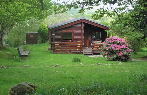 A wonderful log cabin set in beautiful woodland gardens on a small private site, with views out over the Solway Firth and golf course - the perfect setting for a relaxing holiday.. 2 steps to entrance.
