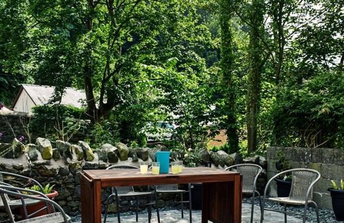 Shower room: With walk-in shower and toilet.. Gas central heating, gas, electricity, bed linen, towels and Superfast Wi-Fi included. Highchair available on request. Welcome pack.. Courtyard with sitting-out area and garden furniture. 1 well-behaved dog welcome. Public car park. No smoking. Please note: There is a stream at the bottom of the garden behind a waist-height wall.. Edina is a lovely Victorian terraced cottage with a babbling stream at the end of the garden and Superfast guest Wi-Fi throughout. Providing a comfortable living room featuring Sky TV and Amazon Music, perfect for relaxing at the end of a busy day. The dining room has seating for six and has a desk with monitor, keyboard and mouse, should you need to check in with work when away. The kitchen is well-equipped with a range-style gas hob and oven, coffee machine, microwave and Ninja Foodi for all your self-catering needs.