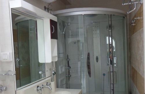 1st Floor: Master Bedroom with King size bed , Wardrobe, Attached Bathroom with state - of- the - art shower with geyser & AC. Also has a Balcony.