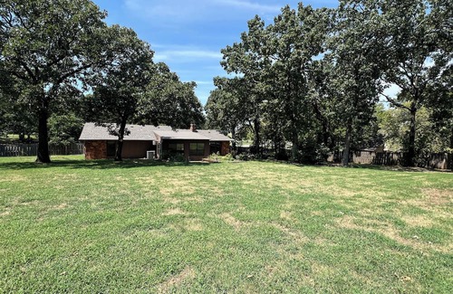 Less than a mile from Spain Ranch and 2 miles from the fantastic Jenks Outlet Mall, get ready to relax in this 3-bedroom house in Jenks. Positioned on a large, .7 acre lot, the massive backyard and fire pit is great for hosting get-togethers, wedding groups, and family events! This lovely property features 1 king bed, 1 queen bed, 1 full bed, and 1 bunk bed, perfect for families or groups of friends. Additionally, the home has a large living room with a 75" TV, great for watching the game, and a cozy sunroom to relax and enjoy the scenery. The 2 bathrooms offer a shower and a hair dryer for your convenience. A fantastic place to call homebase while you're away, we hope you enjoy your stay.