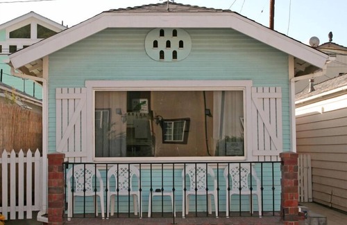Great value for the price. Small, clean and well-loved classic Catalina cottage. Walk through first bedroom (continental bunk beds & double bed) to get to second bedroom (double bed). Has a small front porch with street-side seating, and a small, sunny, and private backyard. Washer and dryer included. This home may allow a small dog (less than 40 pounds); please get details from our reservation specialists. 319CE