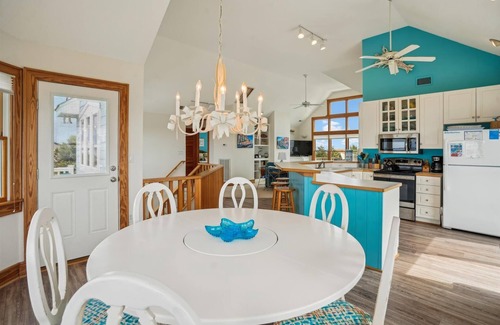 This oceanside home in Duck has breathtaking 360 views of the ocean and sound from decks, all bedrooms, and living areas! It boasts a 14 x 31 private saltwater pool with pool heat, patio, hot tub, and cabana/covered pavilion! Enjoy the colorful beach decor and special touches this home offers to you and your family. Create lasting memories from this beautiful home. Watch the sunrise over the ocean each morning with a cup of coffee and watch the sunset over the sound each evening with your favorite cocktail. Not a moment will be wasted when vacationing at DUCK, DUCK, VIEWS!