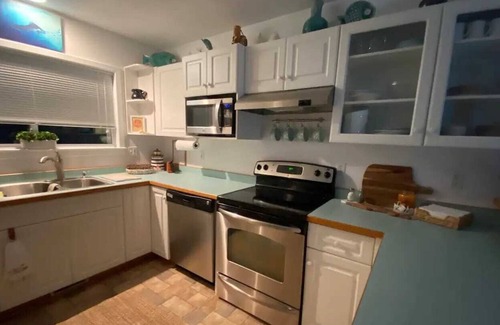 Prepare yourself for ultimate peace and tranquility! This dreamy seaside vacation spot is perfect for those who want to experience an elevated lifestyle. Step inside and bask in the charismatic ambience of the living room, beautifully decorated with unique pieces of memorabilia adding extra character to the space. Reserve at least one morning or evening watching the glimmering sunrise/sunset right from our top floor patio while overlooking the bay. Should the weather force you to stay inside, fear not! An abundance of fun, indoor entertainment/amenities is ready for you, including a large 55-inch HDTV with streaming services on demand, board games, and the indoor hot tub! Getting hungry? Head on over to the kitchen – an absolute haven for cuisine connoisseurs! You’ll find all the tools and appliances you need to cook a delicious meal. This includes an oven, stove, microwave, pots & pans, seasoning, dishes, silverware, and cookware.