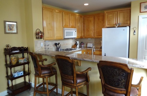 Walk into the condo and up a flight of stairs to the living room, dining area, kitchen and half bath. The living and dining areas are furnished with Ethan Allen quality, sofa and chairs, fireplace and dining for six. A nice balcony and deck is off the living room, furnished with chairs and table and gas grill.