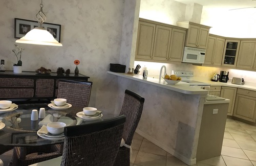 KITCHEN: Fully equipped, coffee maker, dishware, flatware, toaster, knife block, 5-person kitchen table