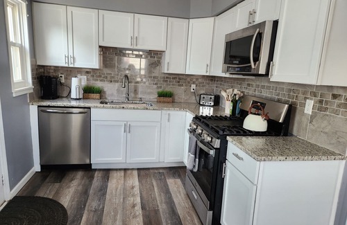 Our cozy cape cod is centrally located in the up-and-coming North Linden neighborhood. This home is small but mighty with it's fun decor and practical functionality. The living room, 2 bedrooms, kitchen and bathroom are located on the 1st floor main level. Upstairs, on the 2nd level you'll find a loft/office space, bathroom and 3rd bedroom. Sleep in as long as you like with "black-out" curtains in each bedroom.