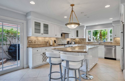 • Remodeled Kitchen Equipped with Granite Countertops and a Spacious Center Island
