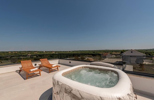 You can also take advantage of the many leisure activities offered by the house. Work out in the private fitness room or relax in the hot tub on the roof terrace and enjoy the breathtaking views. The spacious living area is the ideal place to spend time together and relax after an eventful day.