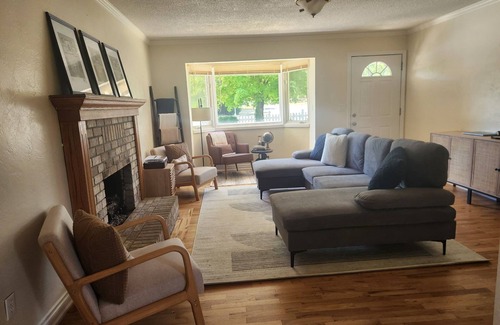 This mid century modern retreat offers all the comforts of home and a location that puts the action of Jackson just steps from your front door. Our 4 bedroom, 2 bathroom home offers a peaceful retreat for 8 guests. All 4 bedrooms come fully furnished with a queen size bed, luxury mattress, high end organic cotton bedding bed, and smart tv. The 2 bathrooms are equipped with all the essentials you need, including a top of the line washer and dryer. Fully fenced large backyard, 2 car garage, private entrance, secure outdoor storage shed, designated work space, fully stocked coffee bar, private outdoor dining for 8 and within walking distance from many restaurants, shops, and yes... even "The Britt."