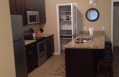 4 bedroom 4-1/2 bath 2 car garage town home close to downtown and Faurot Field. Short walk or ride to the stadium or downtown. Great for a weekend trip or long term stay. Large unit and each bedroom has its own private bathroom. The kitchen has granite counters and stainless appliances. Washer dryer is also included. There is an attached 2 car garage. You won't be disappointed.